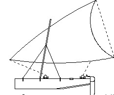 The Polynesian crab claw overcomes all of these drawbacks at the cost of some upwind performance. Since the crab claw requires simple round spars for the mast, boom and yard I could make them myself from carbon fiber and fiberglass. And the crab claw sail works best when it is cut perfectly flat, so I could do that myself too. In addition, this rig doesn't create loads as large as those of the Bermudan rig and so all of the components can be made lighter.